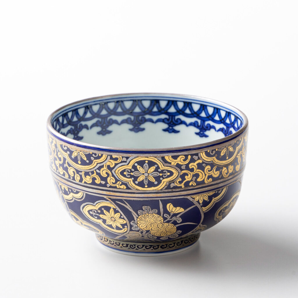 瑠璃地金襴茶碗