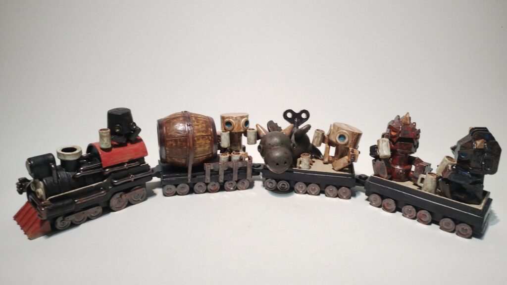 ロボット化したいろいろな生き物や蒸気機関をモチーフに、自由な発想でスチームパンクやファンタジーの世界を表現し、実用性よりも個性や面白さを重視したオブジェとして楽しめるユニークな作品を制作する。