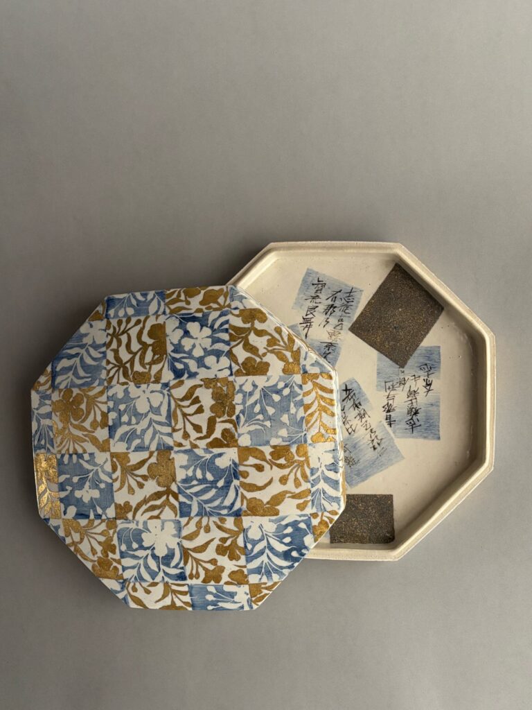 染付金彩櫻絵八角陶筥
